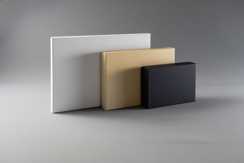 We offer a range of presentation box sizes, including A6, A5, and A4. Each size is available in varying depths, from 20mm to 53mm, providing the flexibility to choose the right size for your products, whether they are small, compact items or larger gifts.